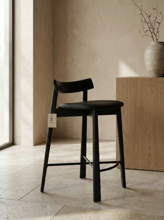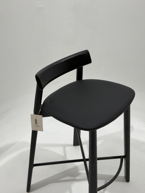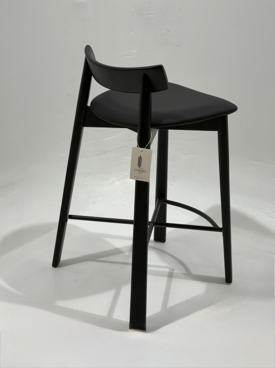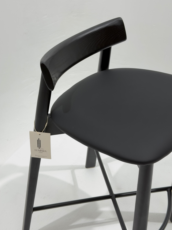 השלדה עשויה עץ איכותי בצבע שחור מט, עם מושב מרופד ונוח לישיבה לאורך זמן ומשענת נמוכה לתמיכה קלילה.
