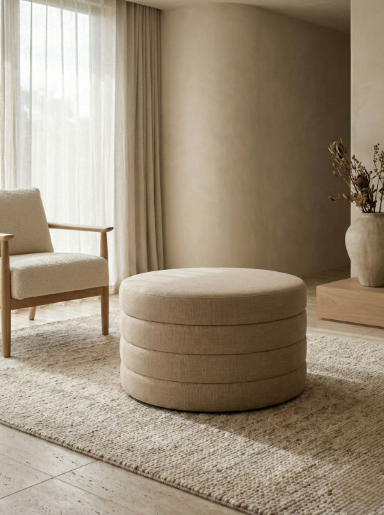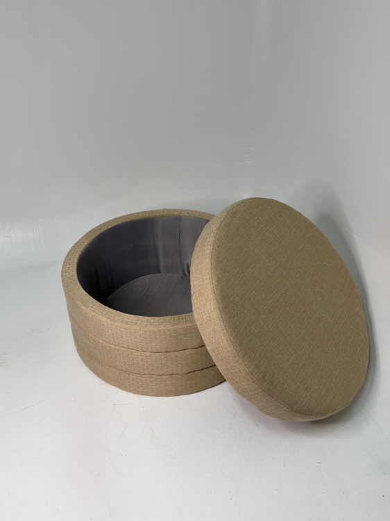הדום האחסון המעוצב שלנו משלב אלגנטיות רכה עם פרקטיות מושלמת. המבנה העגול והריפוד מבד בגוון שמנת מעניקים לו מראה חמים, נקי ומתוחכם — כזה שמכניס לחלל תחושת יוקרה טבעית והרמונית.