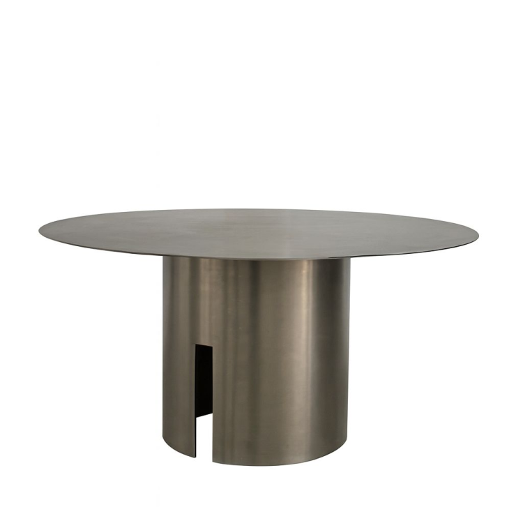 שולחן עגול מנירוסטה מוברשת, עם נוכחות יוקרתית ומראה חלק ונקי שמכניס לחלל תחושת יוקרה טבעית – בלי להתאמץ.