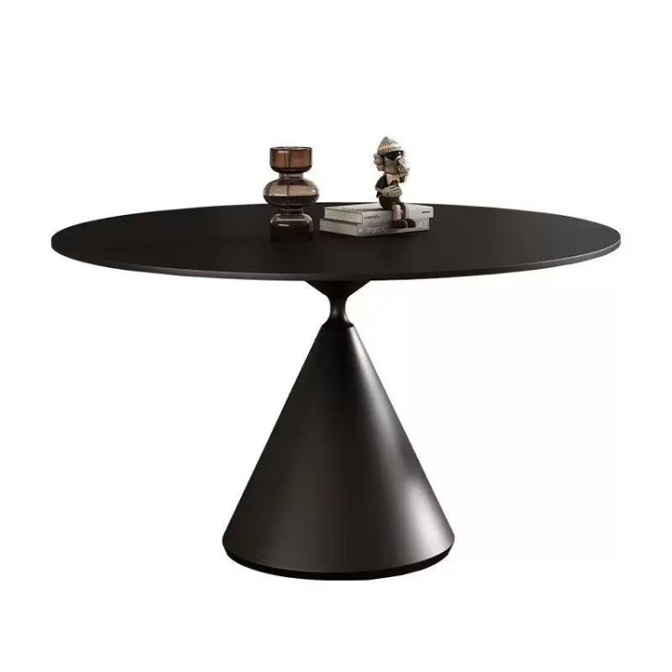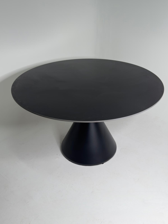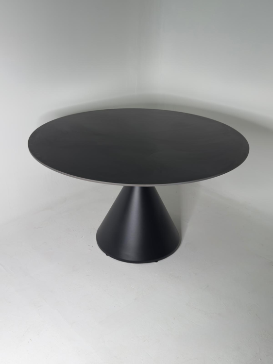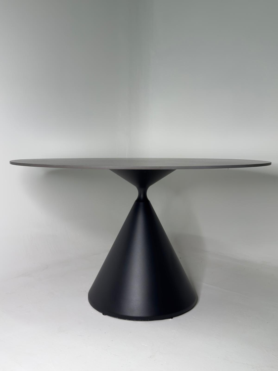 העיצוב העגול והמרשים עם רגל קונית פיסולית יוצר מראה עכשווי מלא נוכחות, בעוד הרגל ממתכת והפלטה העליונה עשויה קרמיקה איכותית המשלבת יופי ועמידות לאורך שנים.