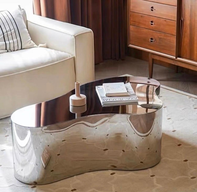 שולחן סלון מרהיב בעיצוב אורגני וזורם, המשלב בין אומנות מודרנית לפרקטיות יומיומית.